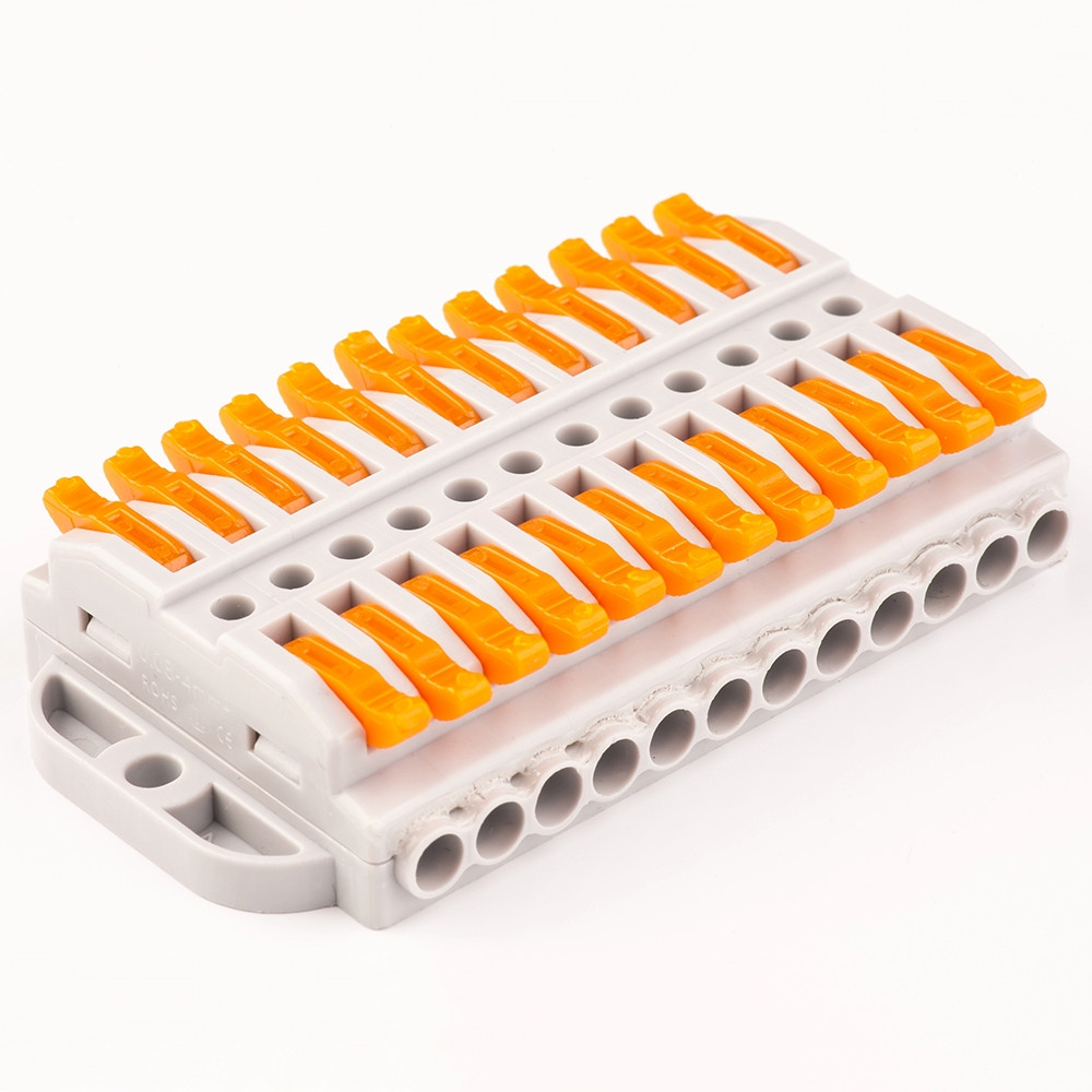 - Корпус клем виготовлений із пластику, а контактна частина: із лудженої латуні, монтаж не вимагає використання інструментів.