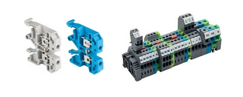 Вся конструкція закривається спеціальною кришкой.Наборние клеми на рейці монтуються справа або зверху, відкритої стороною назовні. Монтуються на рейки, робоча ширина яких не перевищує 35 міліметрів квадратних. За допомогою електромонтажної продукції можна затискати як нульові, так і фазні дроти. Після завершення монтажу клема може комплектуватися биркою з маркуванням для нумерації. Встановлюється вона вибірково, за бажанням.